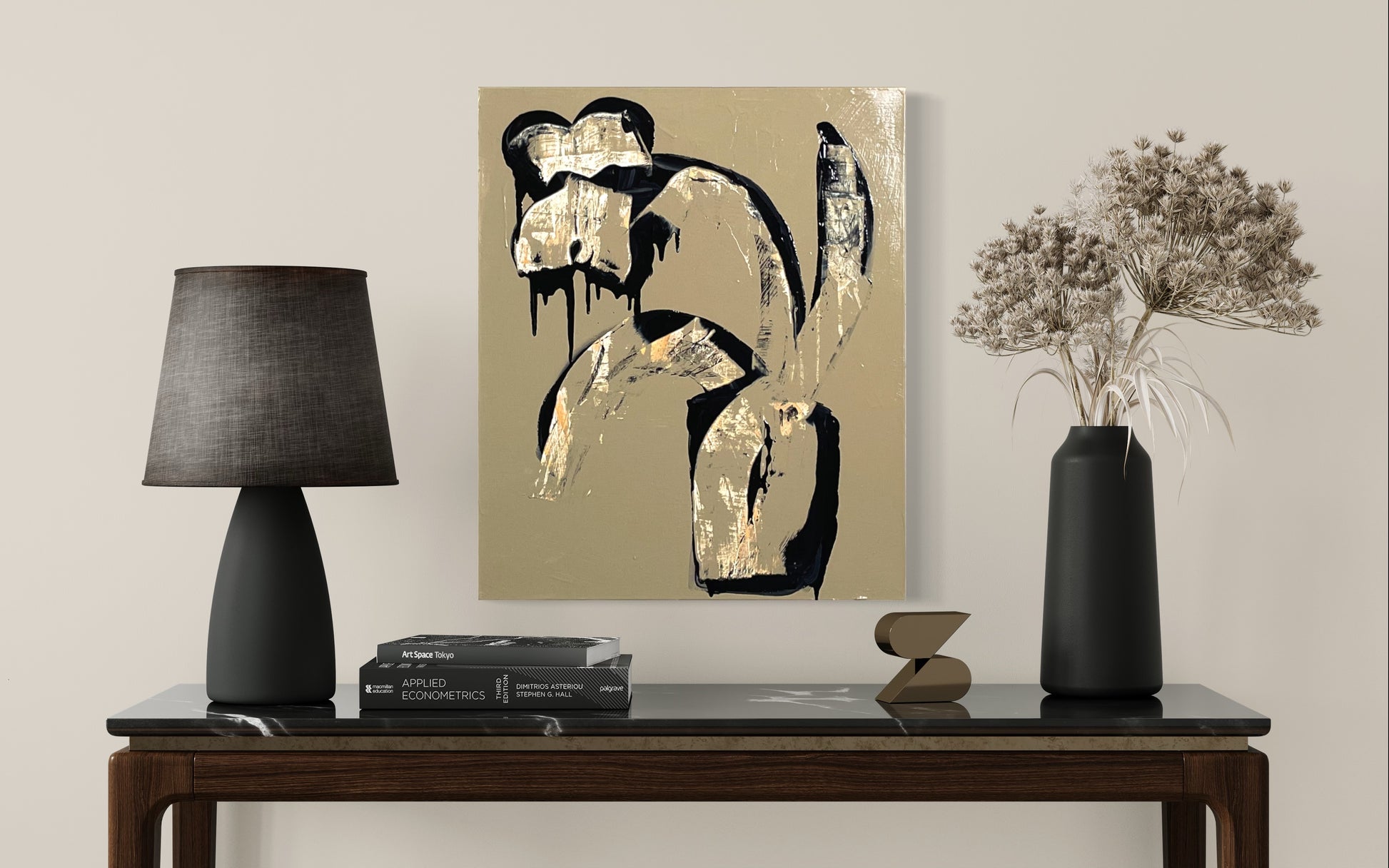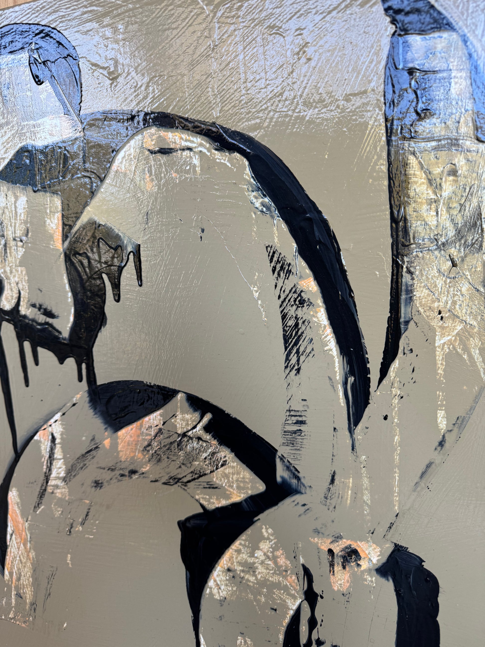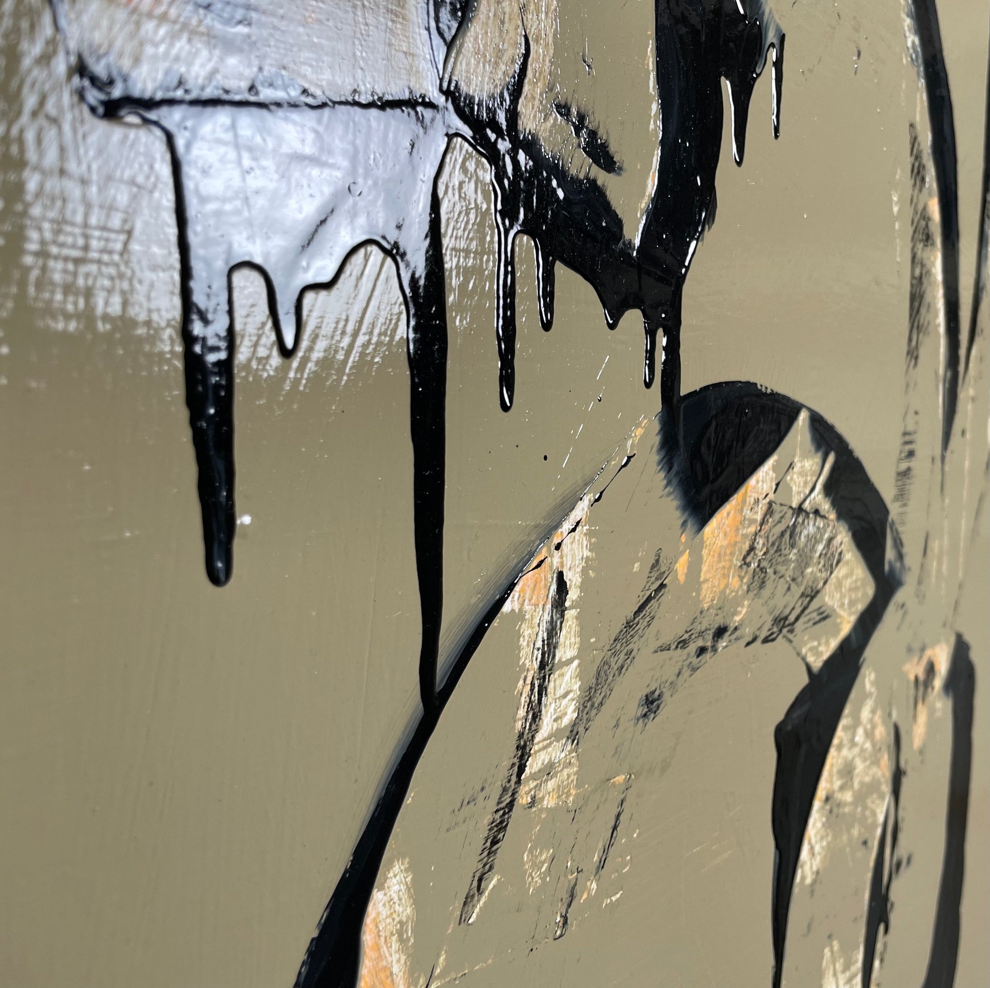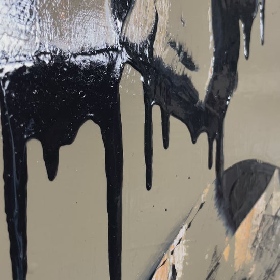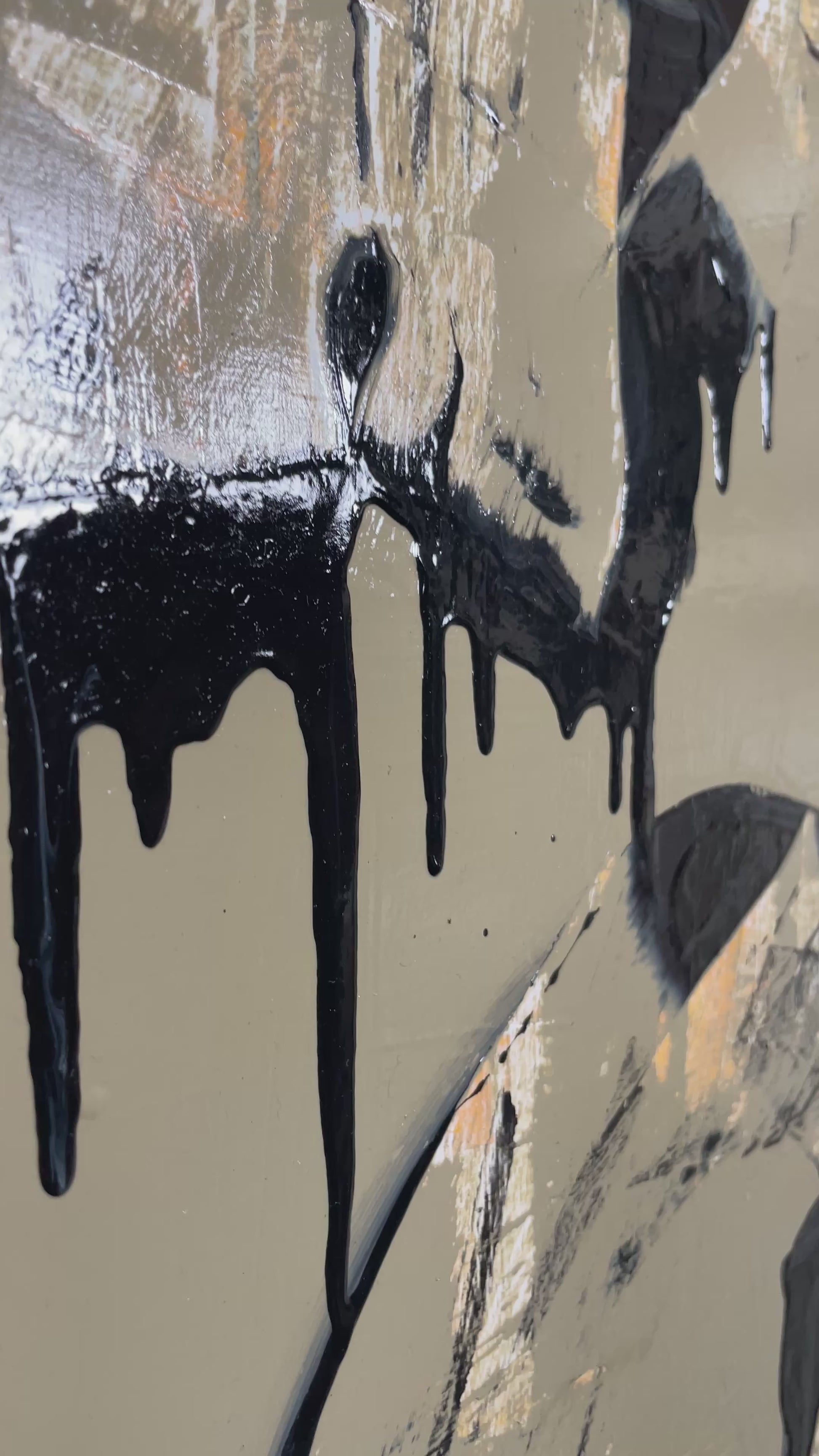 A powerful statement about resilience, revealing what the black can't hide. Insistent textures and vibrant colours break through a dominant, dripping layer of black, suggesting a life force too powerful to be contained. The entire piece is unified under a high-gloss finish, adding a sleek, polished depth to the raw emotion within.